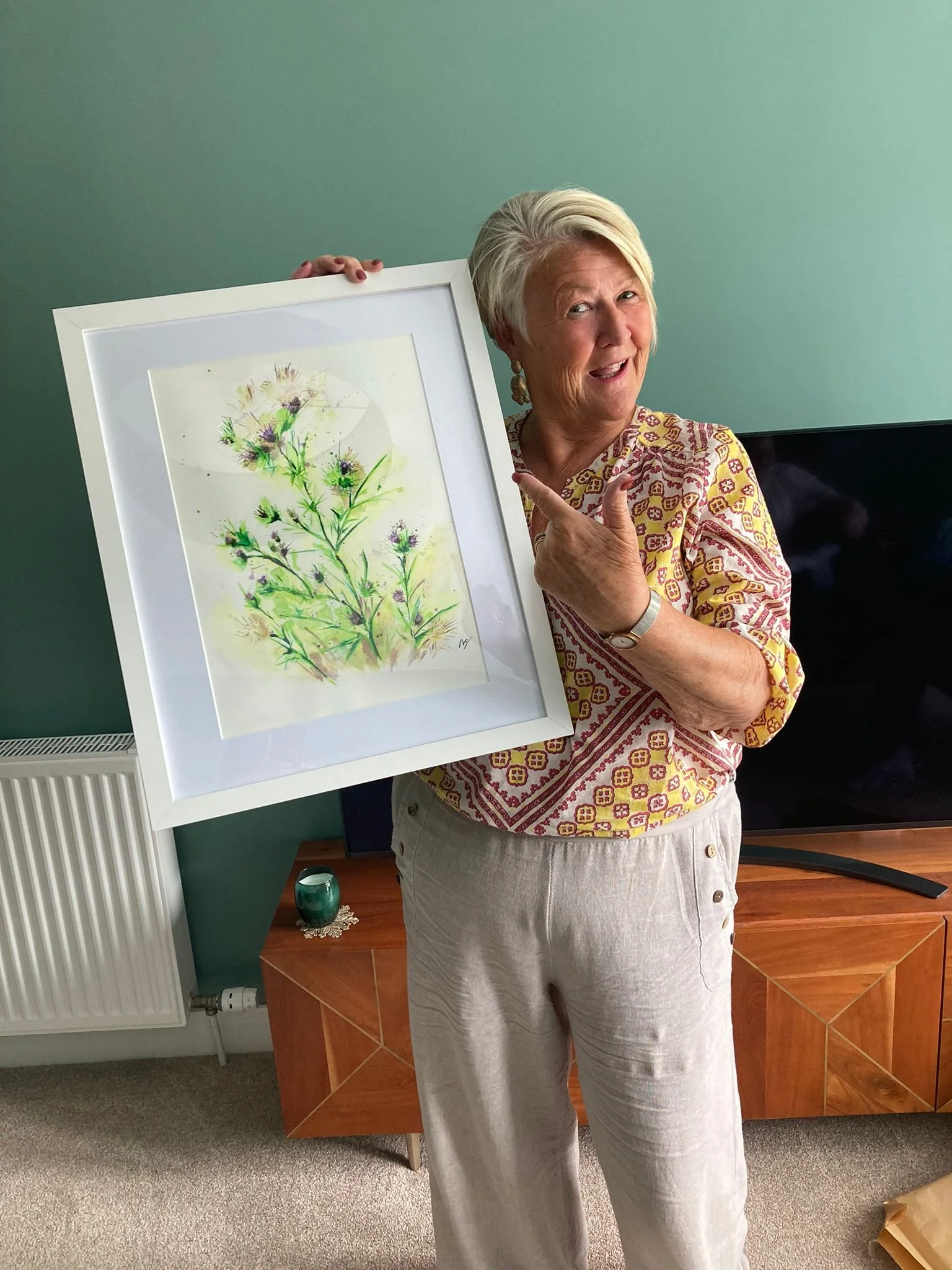 “Nigel you have captured these beautiful Scottish Thistles from your trip to Loch Ness .Thank you, I love this painting!”